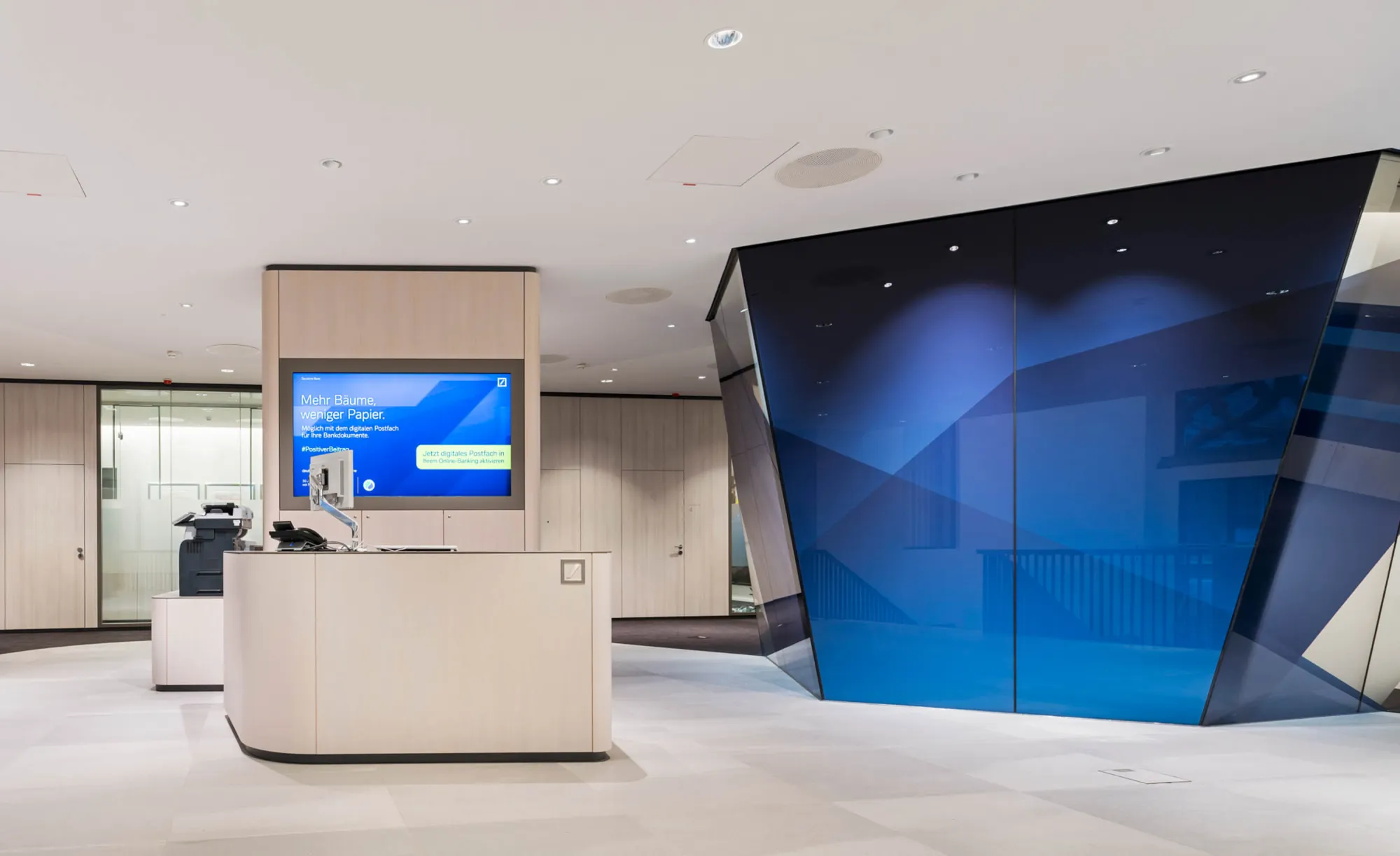 Begleitung der Deutschen Bank bei der Ausstattung einiger Bankfilialen nach den neuen internen Vorgaben zur Innenraumgestaltung.