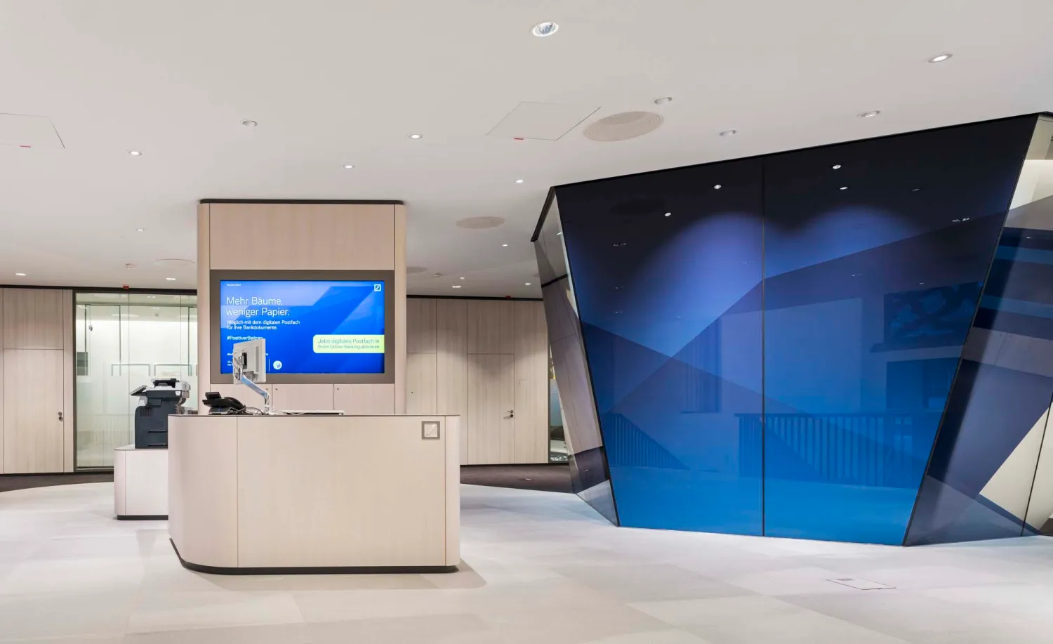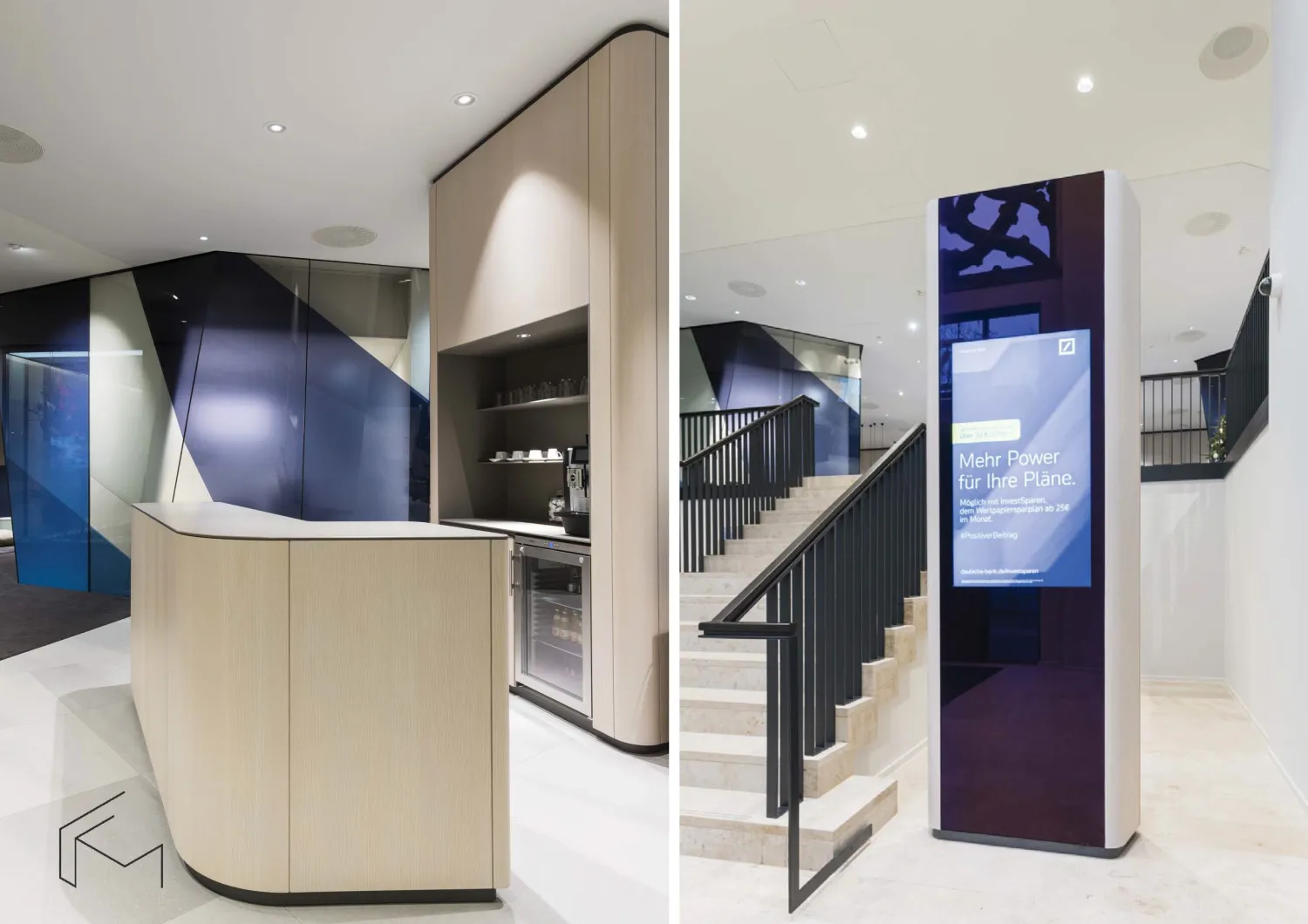 Im Rahmen des Masterplans der Deutschen Bank zur Erweiterung und Revitalisierung ihrer lokalen Filialen übernahm Formatio den Innenausbau mehrerer bedeutender Filialen. Ein Schwerpunkt lag auf den Besprechungs-Einheiten, die private Kundengespräche im öffentlichen Raum ermöglichen und der freigeformeten Einrichtung Komponenten.