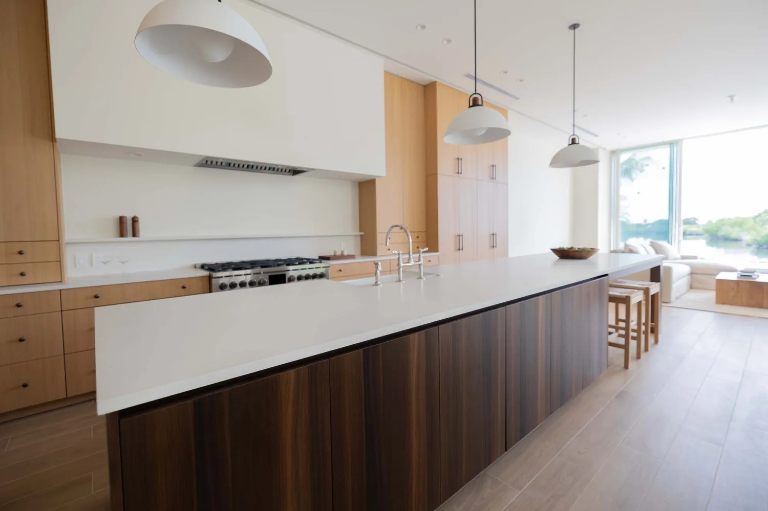 Gestaltung und Ausstattung einer modernen Villa am Wasser im gehobenen Viertel Crystal Harbour auf Grand Cayman. Formatio war für die Herstellung aller Innenausbau-Elemente verantwortlich, um die Vision der Designer für ein frisches und informelles Leben am Wasser umzusetzen.