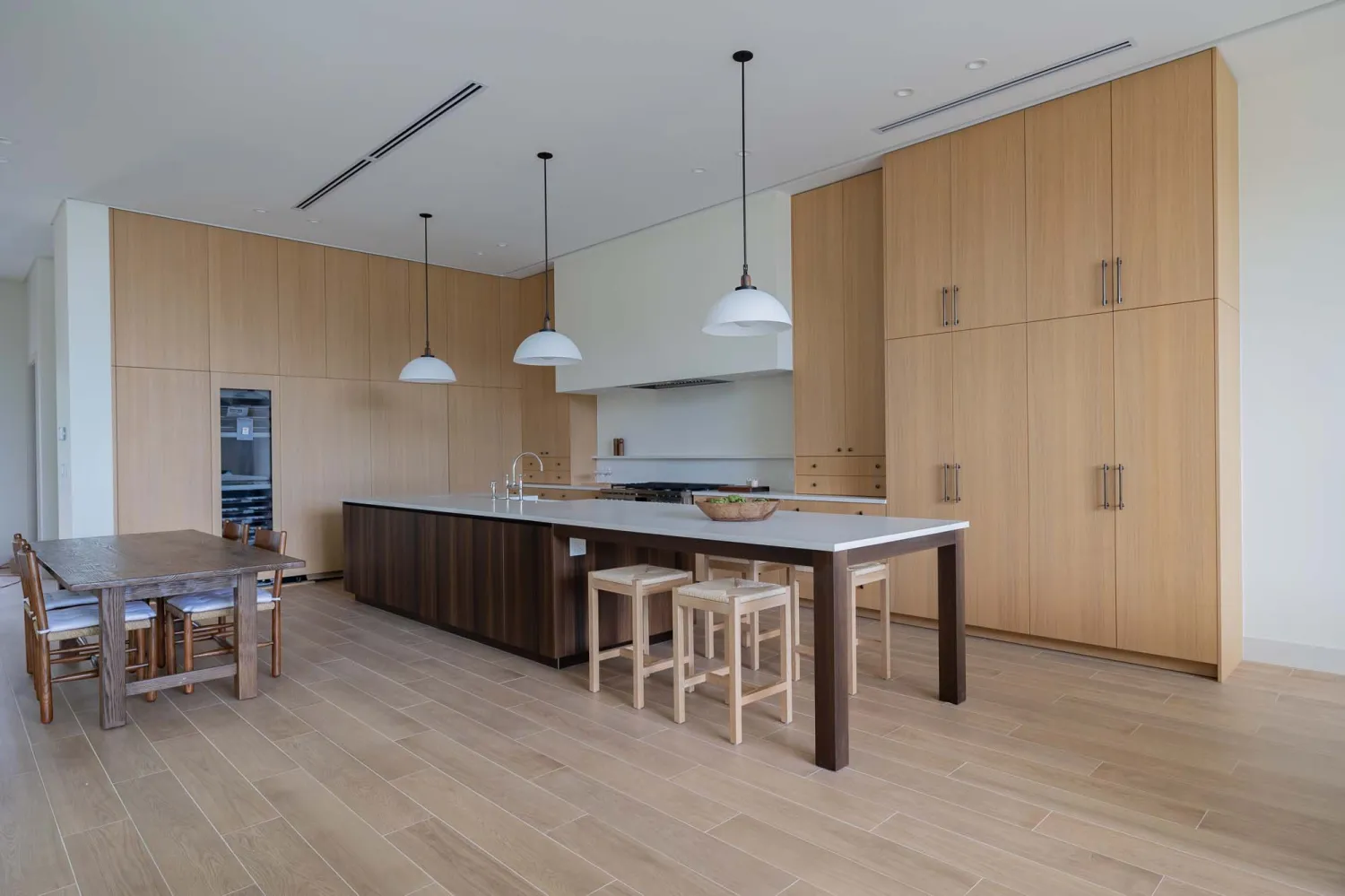 Bei der Gestaltung des Mobiliars und der Einrichtungselemente für eine Villa an der herrlichen Küste von Grand Cayman mit direktem Zugang zum Wasser wurde eine Vision von unvergleichlicher Perfektion verwirklicht. Zu den bemerkenswerten Merkmalen gehören die raumhohe Konstruktion der Küche und die sorgfältige Ausführung der Steinarbeiten, beides integrale Bestandteile dieses einzigartigen Bauvorhabens.