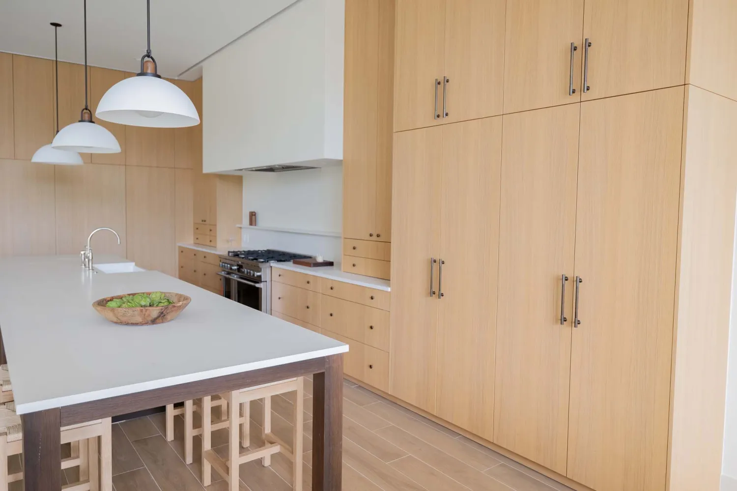 Die Besonderheit dieses Projekts liegt in der fließenden Integration durchgehender Furnierverläufe, wobei das Streben nach makellosem Design bis hin zur Beseitigung erkennbarer Fugen und Materialübergänge reicht. Diese akribische Detailtreue, gepaart mit dem Fokus auf großflächige, ununterbrochene Oberflächen, bildet den Grundpfeiler der Projektanforderungen.