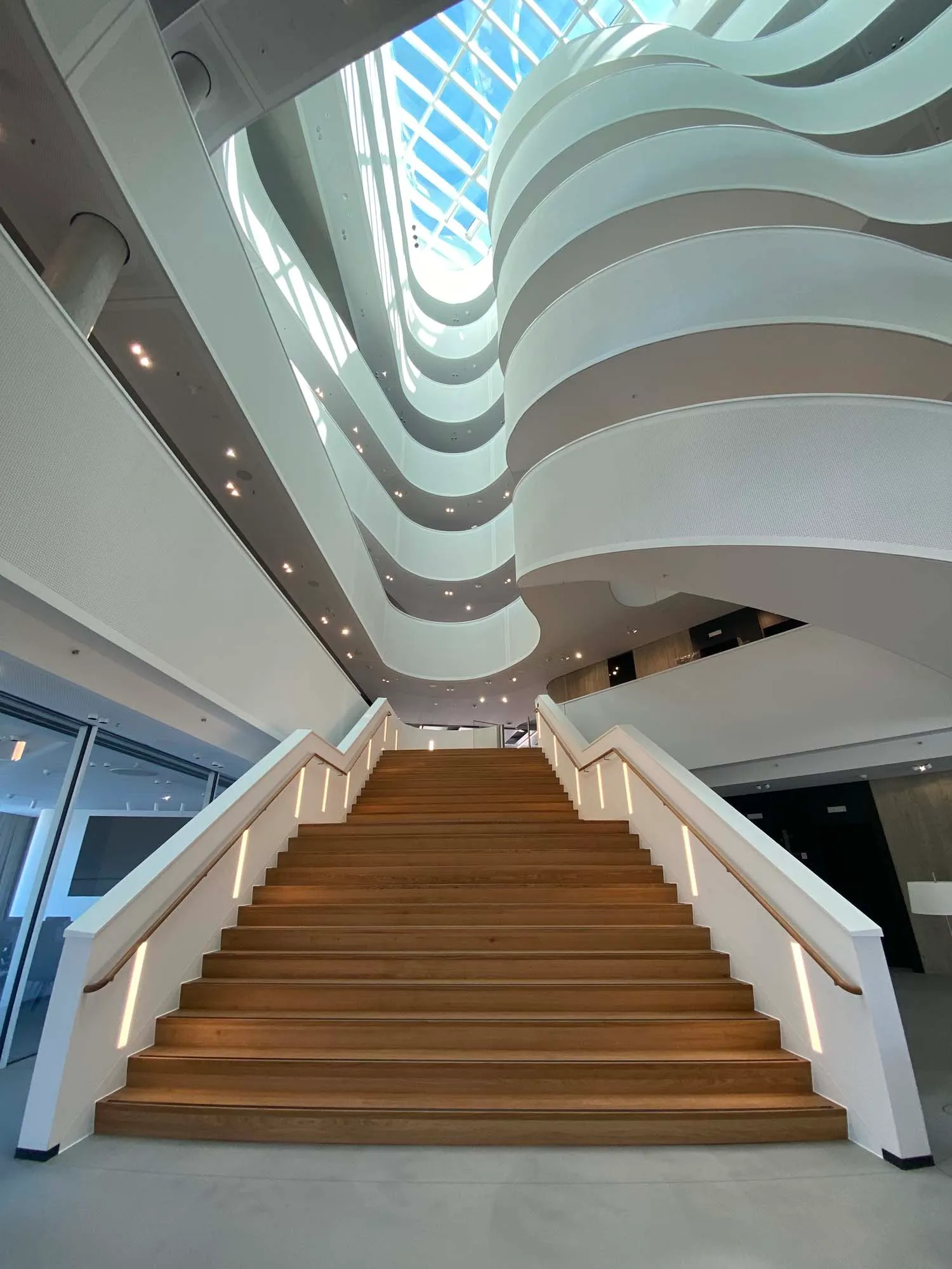 Das Endergebnis ist eine atemberaubende Treppe, die den neuen Hauptsitz einer weltweit anerkannten Marke eindrucksvoll aufwertet.