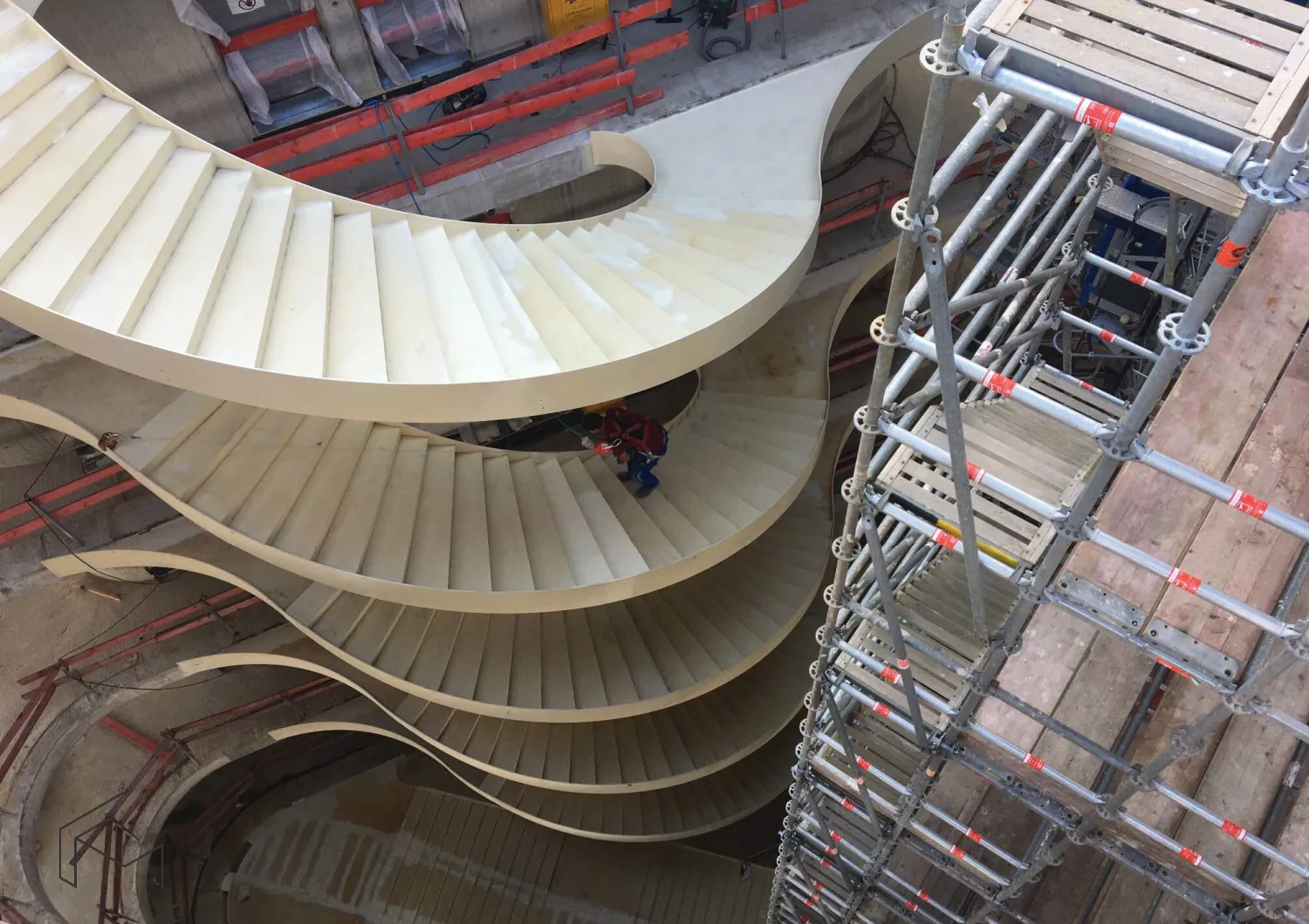 In Abstimmung mit dem detaillierten Zeitplan der Architekten und Hauptauftragnehmer hatten wir zwei Wochen Zeit, um die Installation der Balustrade vor Ort abzuschließen. Durch präzise Scandaten, 3D-Modellierung und nahezu toleranzfreie Produktion konnten wir perfekt passende Balustradenkomponenten vorfertigen. Das Formatio-Installationsteam konnte seine Arbeit gut innerhalb der vorgegebenen Zeit abschließen und die Installation erfolgreich beenden.