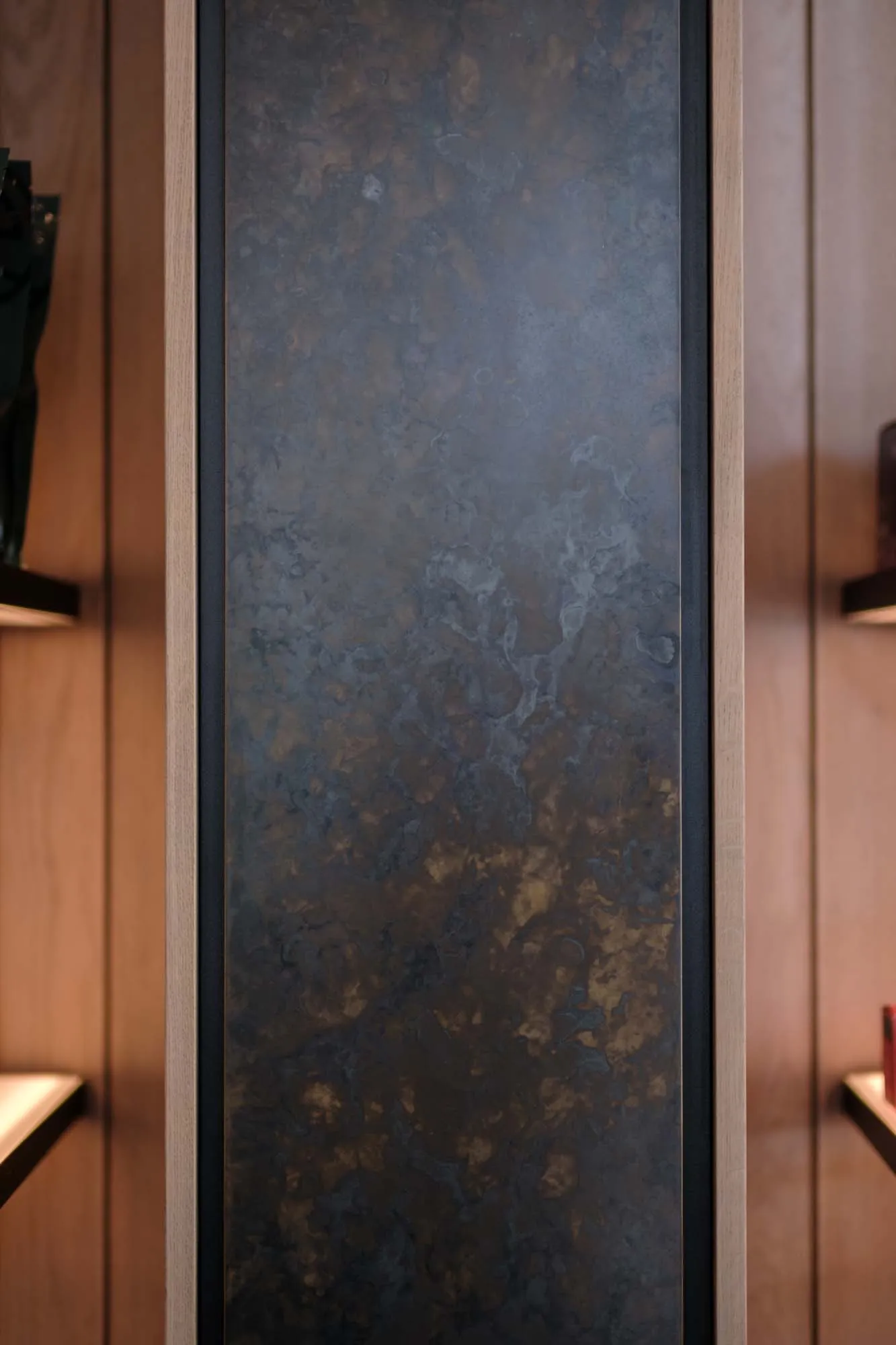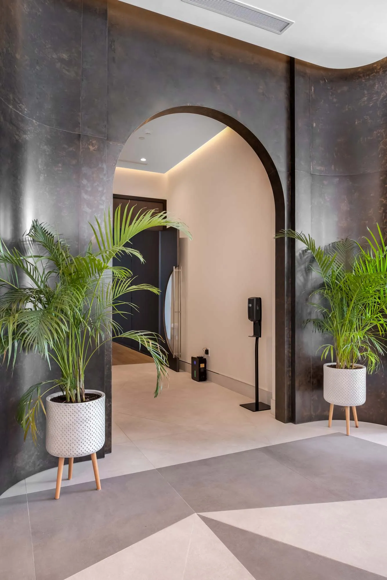 Ein markantes Merkmal, das in Übereinstimmung mit der Vorstellung des Innenarchitekten entwickelt wurde, war die mit flüssigem Metall beschichtete Wandverkleidung, ein Kunstprojekt, das dem Ambiente des Fitnessstudios einen Hauch von Raffinesse und Einzigartigkeit verleiht.