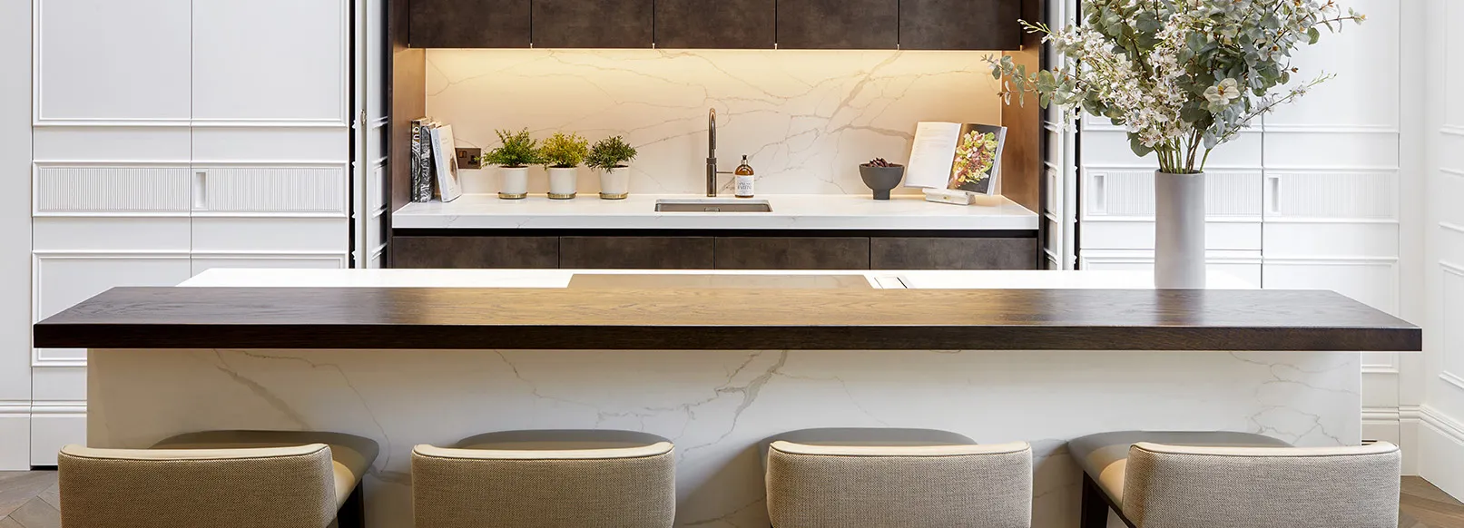 Wohnküchen, Büroküchen, Pausenbereiche und Arbeitsplatten in verschiedenen Marmor- oder Quarzstein Varianten, die den jeweiligen Anforderungen des Projekts entsprechen.