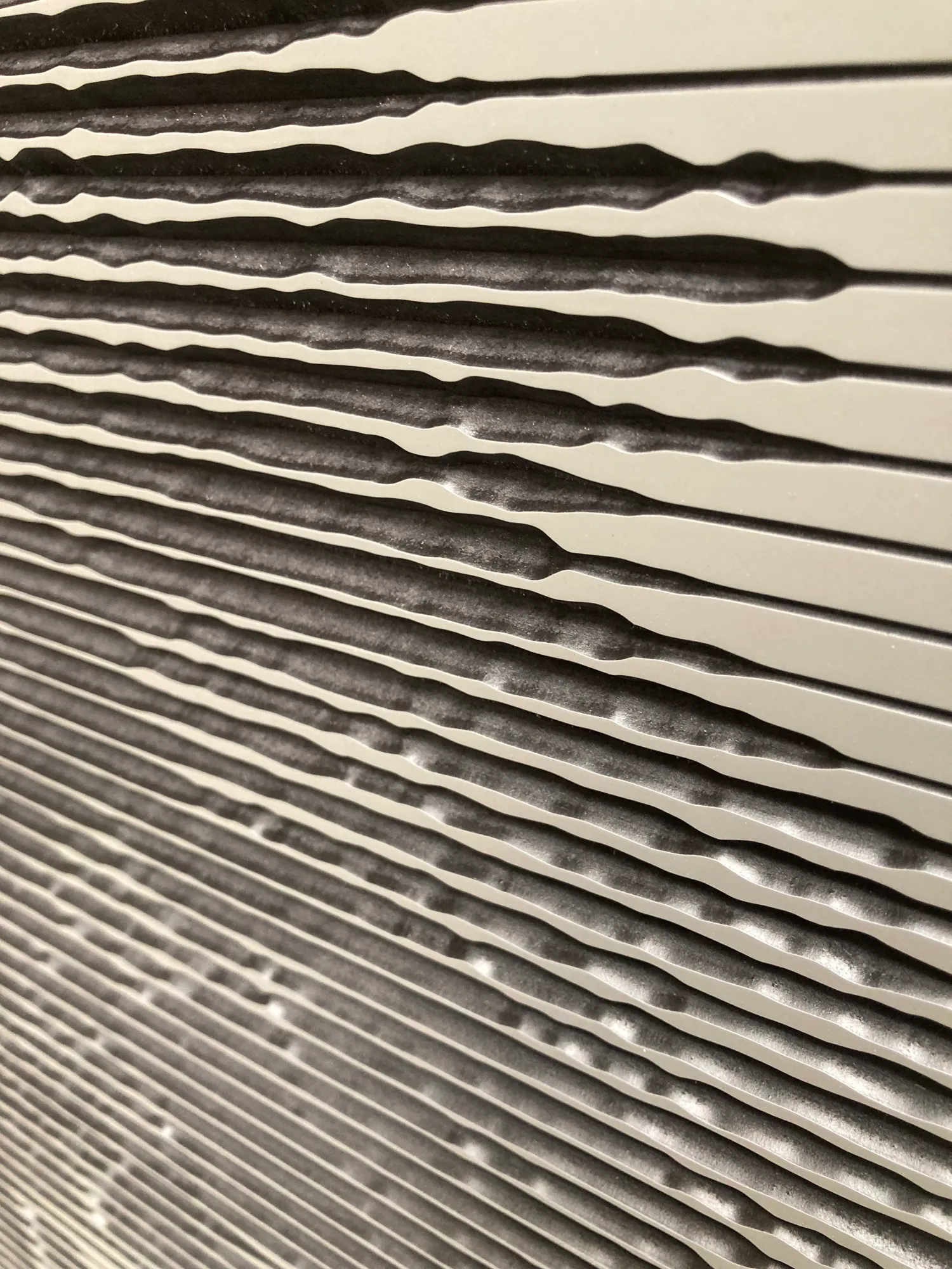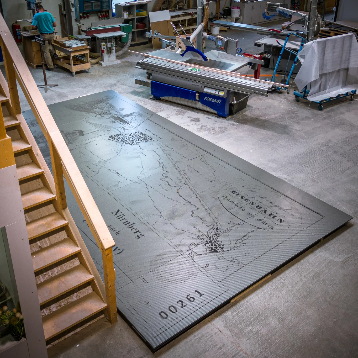 Diese riesige künstlerische Karte wurde für die Vorderseite einer 6 Meter langen Schiebetür hergestellt. Die Tür ist in einem Hotel in Nürnberg zu sehen. Durch die Umwandlung von Pixeldaten aus einem 2D-Bild in 3D-Konturen haben wir mittels 5-Achs CNC Technik eine 3D Topografie auf dem Plattenmaterial erstellt. Das Kernmaterial ist Schwarz und schafft die Kontraste mittels der silbergrauen Lackierung. Die jeweilige Breite jeder Linie richtet sich dabei nach der der SchwarzWeiss Graduation des ursprünglichen Bildes.