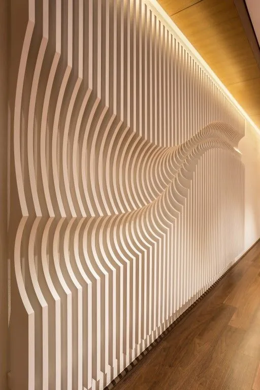 Formatio gewann die Ausschreibung zur Herstellung von mehr als 15 ungleichen Wandverkleidungen mit unregelmäßiger triangulierter Geometrie.