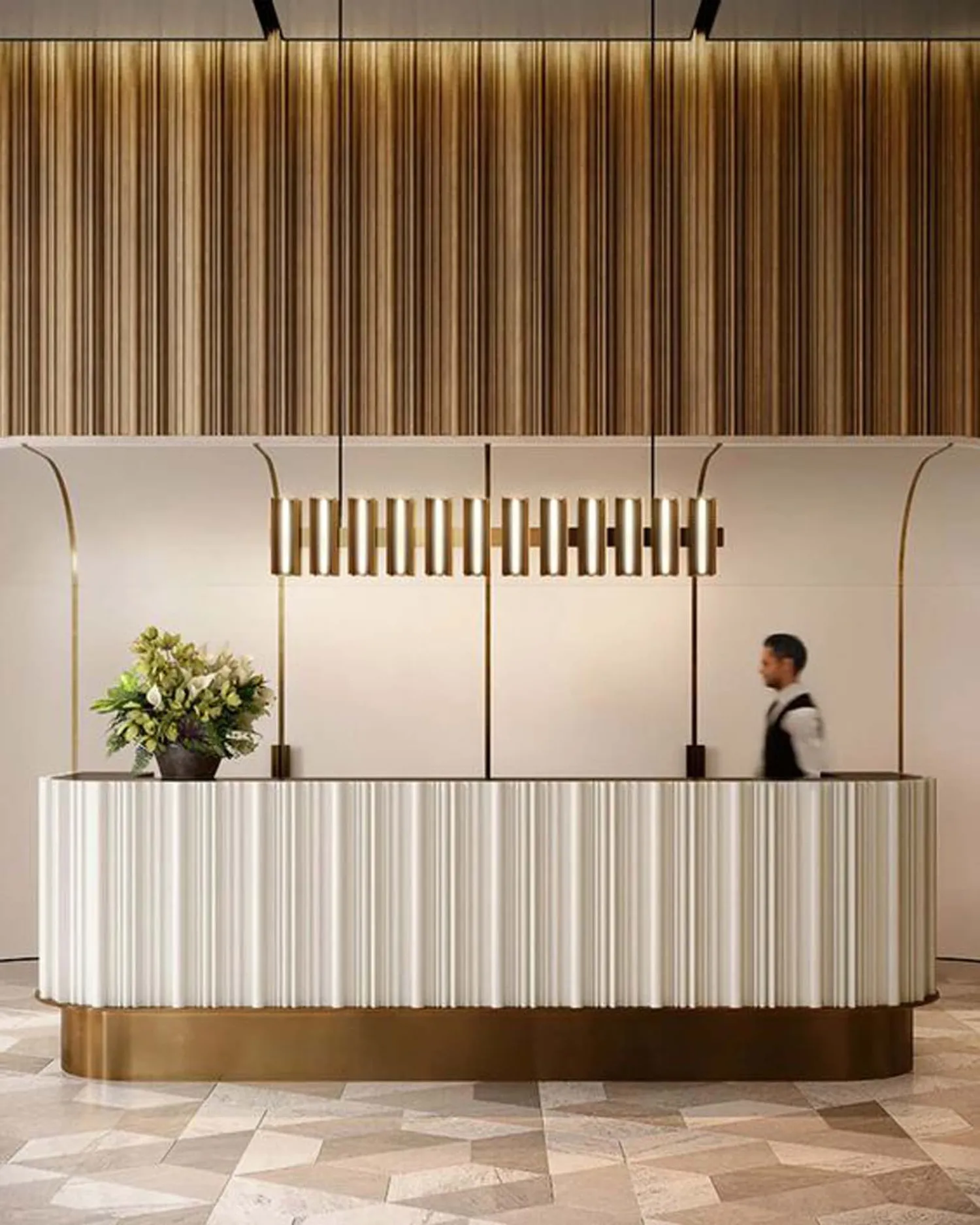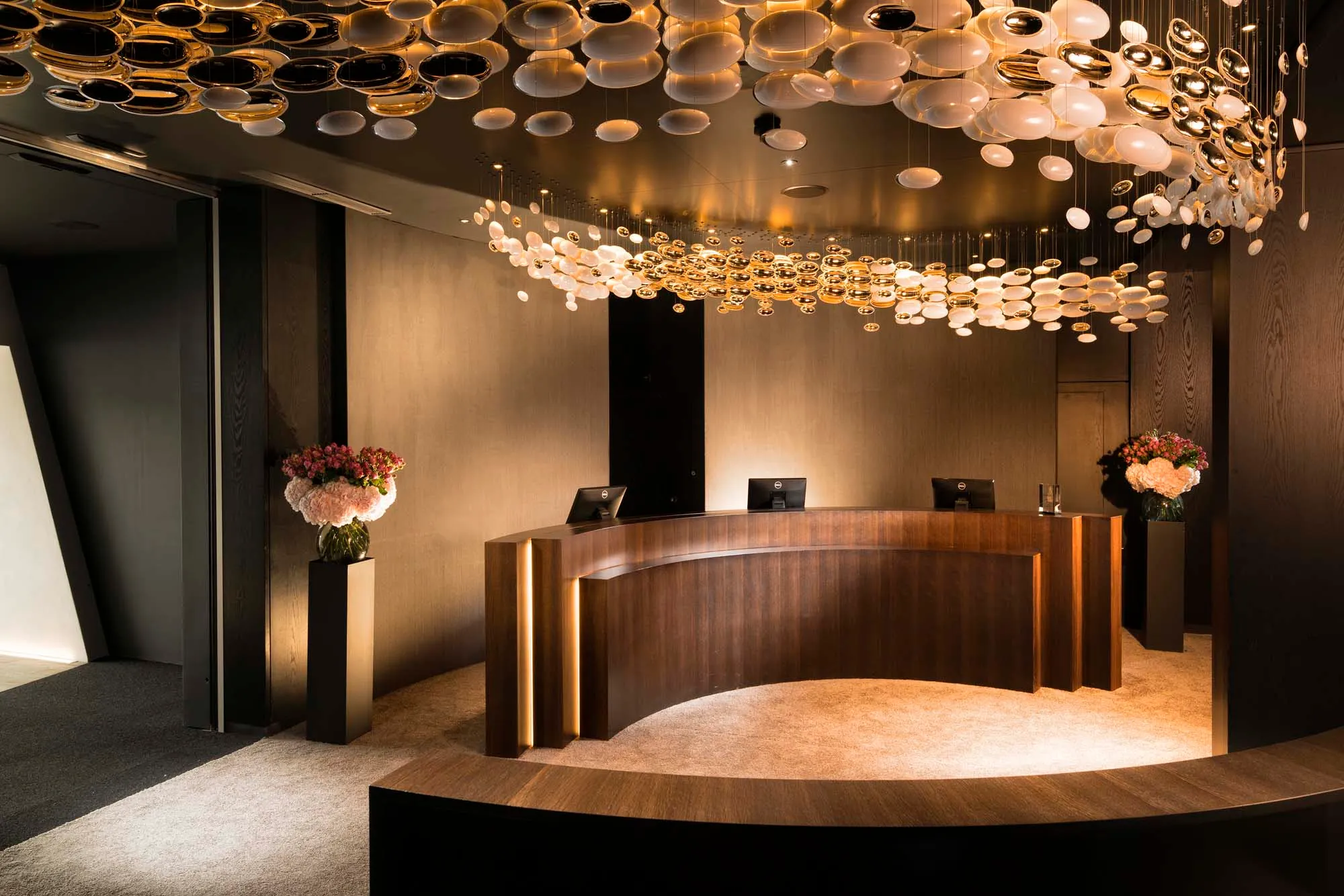 LED-Beleuchtung in Empfangsbereichen prägt die Gesamtstimmung und Atmosphäre des Raums. Die richtige Farbtemperatur, Lumenleistung und Positionierung der LED-Leuchten sind entscheidende Faktoren. Formatio beherrscht Präzisionstechniken, um LED-Leisten und die dazugehörigen Treiber nahtlos in Empfangstresen, Wandverkleidungen und andere künstlerische Elemente zu integrieren.